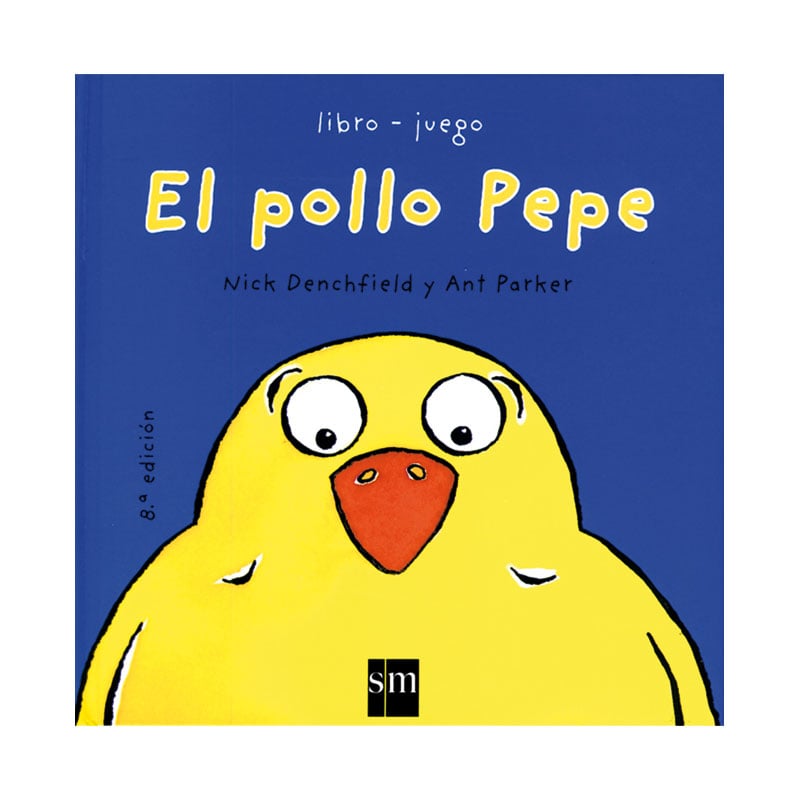 Son 10 páginas, 53 palabras, 3 pop-ups y un desplegable. Con estas mimbres, Nick Denchfield y Ant Parker crearon El Pollo Pepe, un álbum magnético para los niños a partir de un año. Tiene animales –la representación favorita de los peques en las primeras edades-. Se habla de comida y de las partes del cuerpo –dos aspectos esenciales en el aprendizaje de los más pequeños, que están descubriendo texturas y sabores, las rutinas de alimentación y su propio esquema corporal- y hay una mamá. Las ilustraciones, en colores planos, rezuman vitalidad y propone una sorpresa en cada pop-up muy bien anticipada. La tipografía nos ayuda a leer con más expresividad en voz alta (las palabras “grandes”, “mucho”, “enorme” están escritas… ¡enormes!) y muestra al animalito desde puntos de vista sorprendentes (¿Exceptuando a Pepe, cuántas veces has visto un pollito desde abajo?).