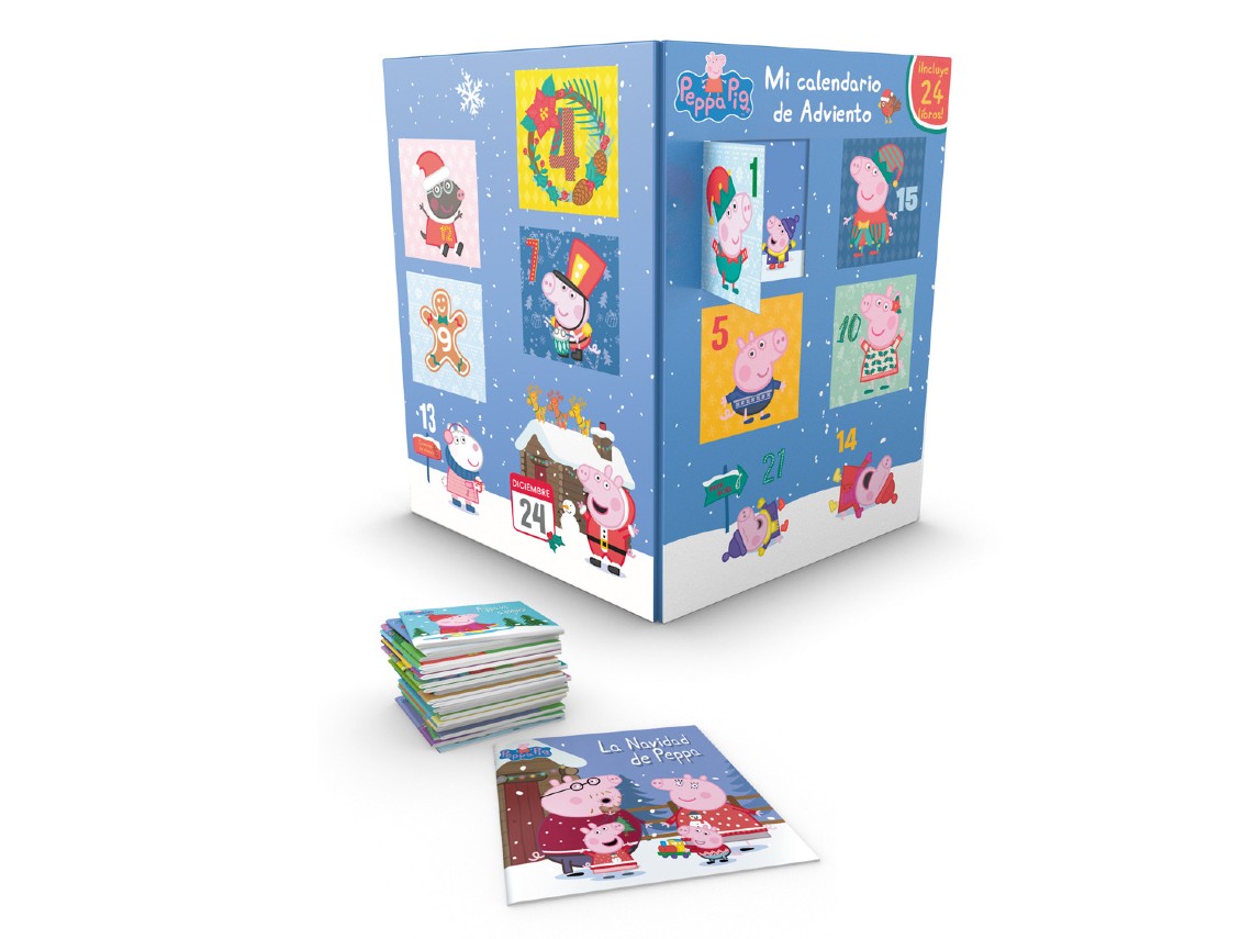 24 minilibro sorpresa de Peppa Pig y su familia detrás de cada ventana y... ¡un cuento especial para Nochebuena!