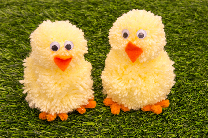 Una manualidad perfecta para realizar un adorno para el coche. Haremos dos pompones con ayuda de lana y un donut de cartón y después los uniremos con unas puntadas de lana. Para finalizar, le pondremos a la parte de arriba los ojos y el pico y tendremos un pollito de lo más original.