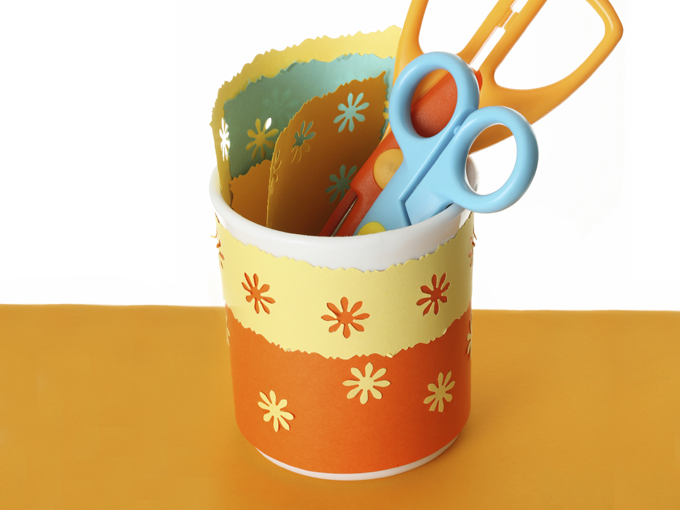 El cubilete de los lápices lo pueden fabricar con esa taza fea de propaganda o con un vaso viejo que tengamos por casa. La pueden forrar con fotos de sus caritas, con pegatinas divertidas, con fieltro, con sus dibujos de papel... Después de pegar las fotos, o el material elegido, con cola podemos forrar la taza con forro plástico autoadhesivo. Otra opción es pintarlas de arriba a abajo con pinturas acrílicas o con rotuladores especiales para las tazas. Una idea genial para que papá recuerde a sus pequeños todo el tiempo que está trabajando.