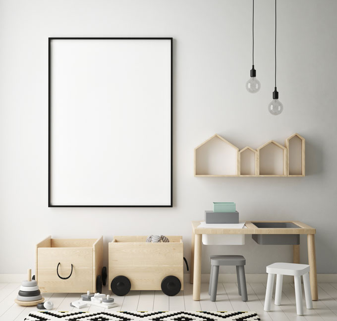 Coloca una mesa y una silla adecuadas a su tamaño y junto a ella pon de manera ordenada los elementos necesarios para dibujar, de modo que cuando el niño inicie la actividad no precise de nuestra ayuda. En este rincón puedes colgar una pizarra así como imágenes y fotos, pero recuerda hacerlo a la altura de sus ojos, para que pueda observarlas. Esto estimulará su creatividad y su capacidad de observación, ¡les encantará!