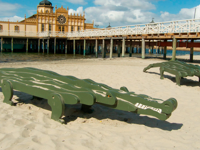 Est parque infantil Cocodriles, Varberg, ubicado en Suecia, tiene os esculturas en la arena para jugar o simplemente sentarse a disfrutar de las vistas.