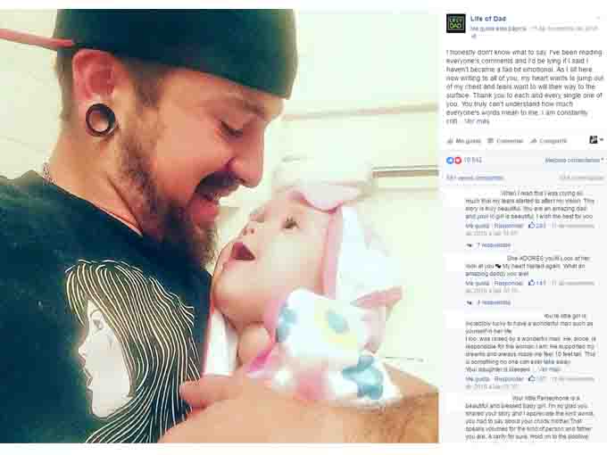 Este hombre, además de ser un padre genial, es un hombre comprensivo y bueno que no duda en afirmar que la madre de su hija es una buena mujer y que “no importa qué, ella es la madre de mi niña y solo deseo lo mejor para ella. Espero que ella pueda ser feliz y eso es todo lo que importa. Es algo que me gustaría inculcar a mi hija. La depresión posparto es algo verdaderamente trágico y no se lo desearía ni a mi peor enemigo”.