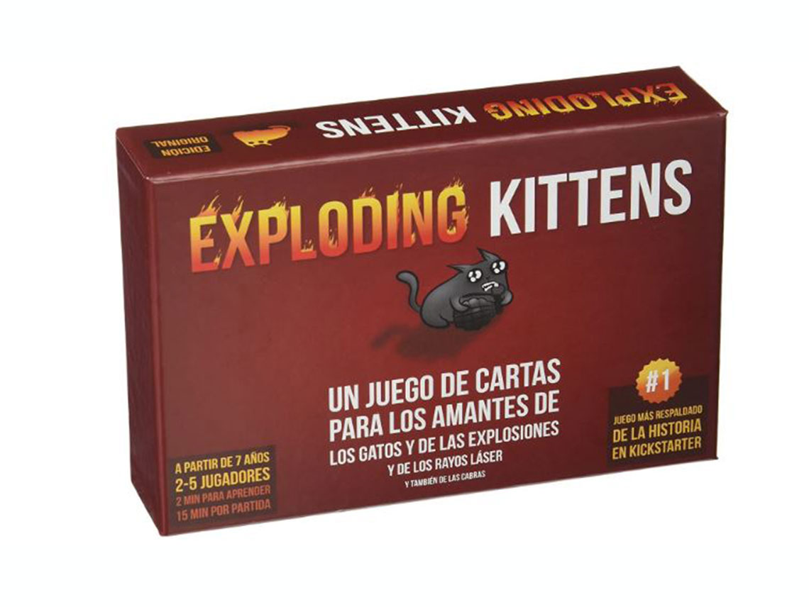 Exploding Kittens es un juego rápido y divertido en el que tienes que asegurar tu supervivencia ante los temibles ¡gatos explosivos! Un juego de cartas en el que hasta cinco jugadores hacen todo lo posible por hacer que caigas eliminado. Ideal para niños a partir de los 7 años.- De Amazon, 19,96 €.