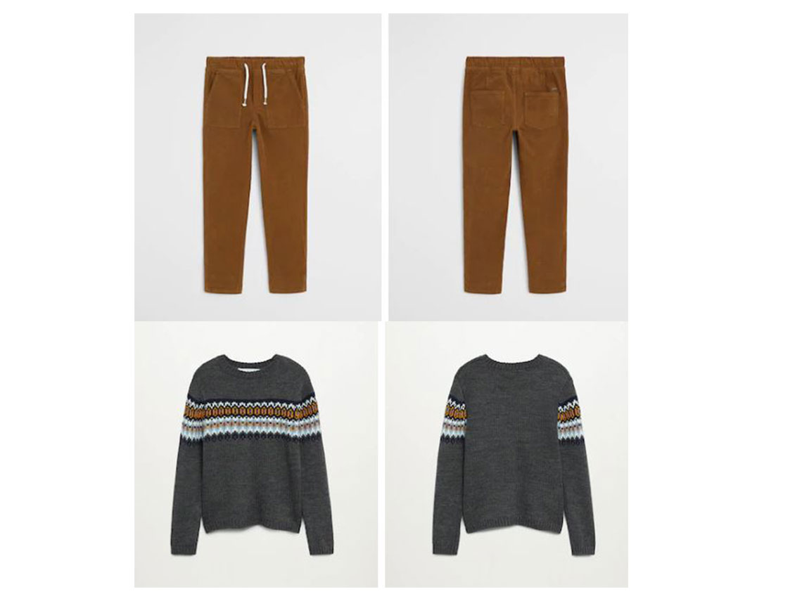 Estos pantalones de pana son muy cómodos: los podrán llevar al cole o para cuando queramos que vayan más arreglados. Además, el jersey les da un look muy juvenil, pero a la vez siendo ropa totalmente de niño. Todo de Mango.