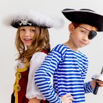 Si a tu hijo le encantan las aventuras y surcar los mares, puedes convertirlo en el pirata más guapo del carnaval vistiéndolo con una camiseta de rayas y un pañuelo en la cabeza, y pintándole un parche en el ojo (o confeccionando uno de tela). ¡¡No habrá mar ni embarcación que se le resista!!