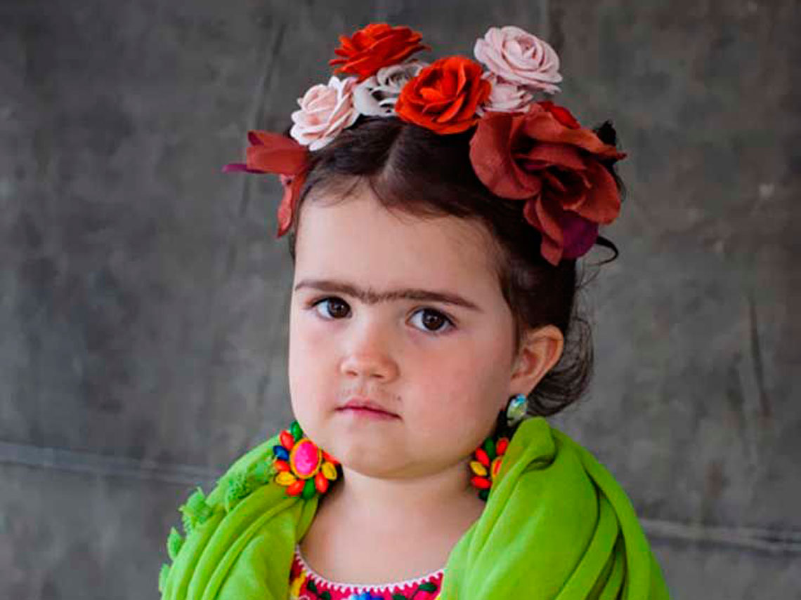 Convierte a tu niña en una mujer de fuerte personalidad y fuerza artística al disfrazarla de Frida Kahlo. Basta con ponerle una corona de flores en la cabeza, un pañuelo verde en torno a los hombros y pintarle un entrecejo. ¡No fallarás!