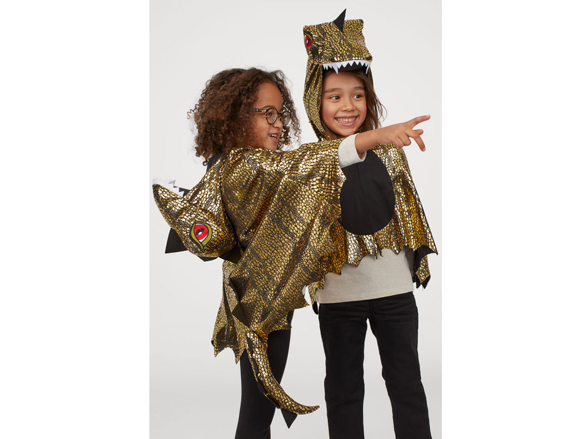 Y aunque solo se componga de una prenda, de por sí el disfraz es increíble. Tiene un estampado metalizado dorado, detalles bordados y aplicaciones de fieltro. Además de una capucha forrada y una cola extraíble.