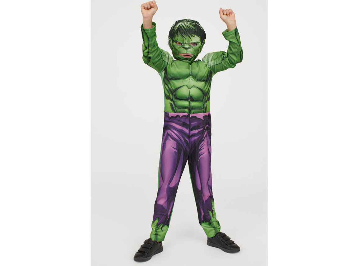 Disfraz con pecho y hombros acolchados y cierre autoadherente detrás para los fanáticos de los superhéroes y, en especial, de Hulk.