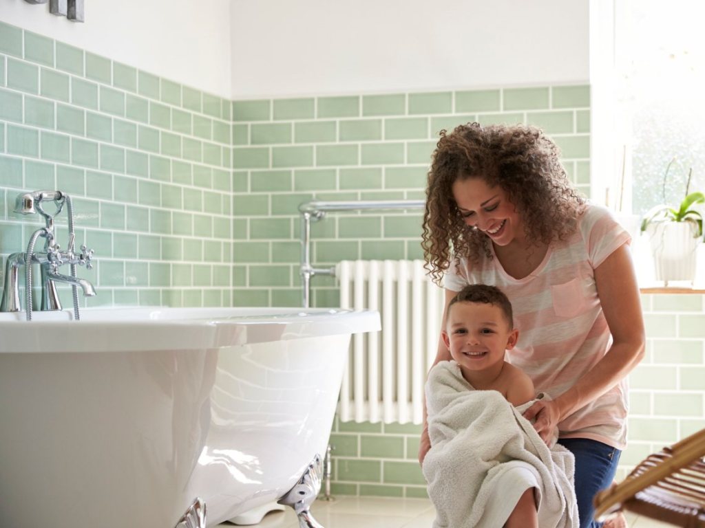 En caso de que no lo hayamos hecho antes, otra pauta sencilla y tremendamente fácil de seguir consiste en introducirnos con el niño en la bañera o ducha y bañarnos con él, predicando con el ejemplo.