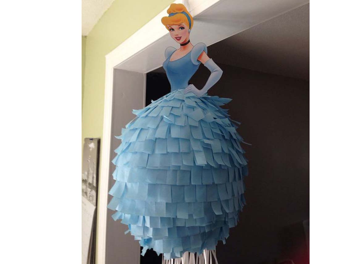 Esta piñata es ideal para los pequeños más fans de Disney y, en concreto, de sus princesas. En este caso, te proponemos a Cenicienta para hacer de ella una piñata de lo más original. La clave está en su vestido. Bajo la pomposidad de sus faldas, los pequeños encontrarán las golosinas. Para la parte superior de la princesa, basta con imprimirla en un buen material (en la copistería lo hacen sin problemas) y recortarla.Foto Pinterest Etsy