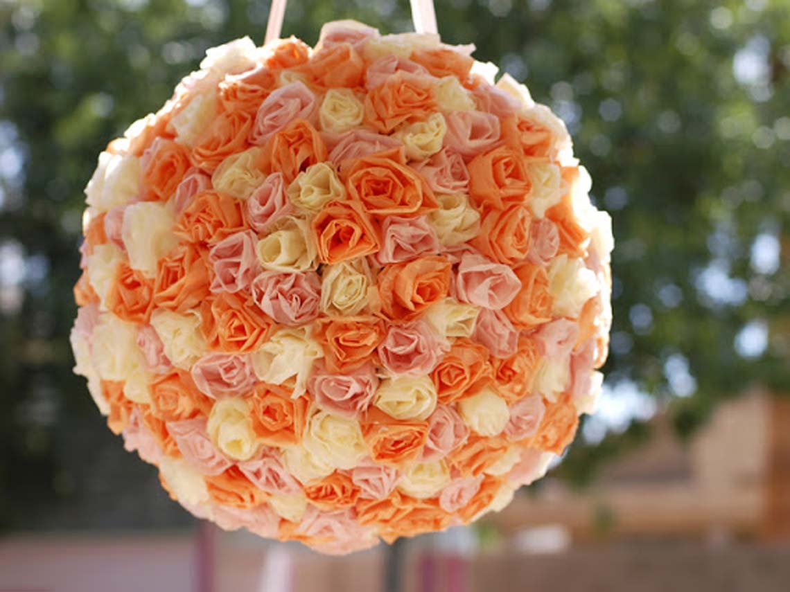 Esta sencilla piñata es muy pero que muy elegante. Las flores siempre son un adorno que embellecen cualquier lugar y evento. Por esta razón, te damos la idea de incorporarlas a tu piñata. Con papel de seda, ¡son muy fáciles de realizar! Además, puedes hacerlas de todos los colores que quieras para que llame aún más la atención. Foto: Blog Kate Landers Event