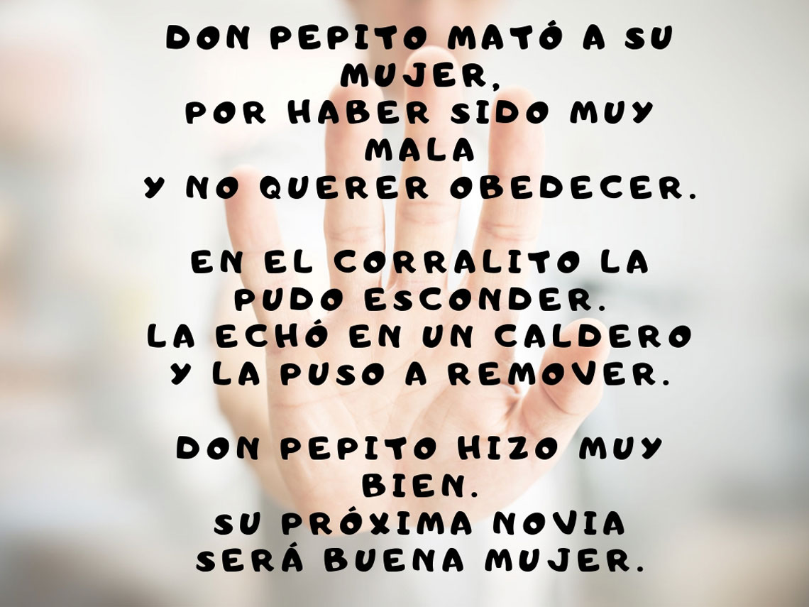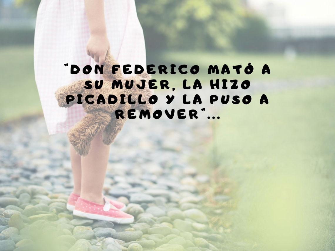 Esta canción es mucho más que machista, ya que en ella hablamos directamente de violencia de género . “Don Federico mató a su mujer, la hizo picadillo y la puso a remover…” Tiene diferentes versiones, pero en todas el contenido es el mismo y, desde luego, es inaceptable. Da igual el contexto, da igual que hayan pasado años desde el auge de su popularidad, esta canción nunca debió ser creada ni cantada y mucho menos debemos permitir que se siga extendiendo entre las siguientes generaciones.