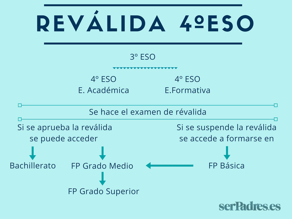 Las evaluaciones finales de Educación Secundaria o exámenes de reválida se realiza en 4º de ESO y podrán hacerlo todos aquellos alumnos que hayan suspendido como máximo dos asignaturas, siempre que estas no sean ambas Lengua y Matemáticas.