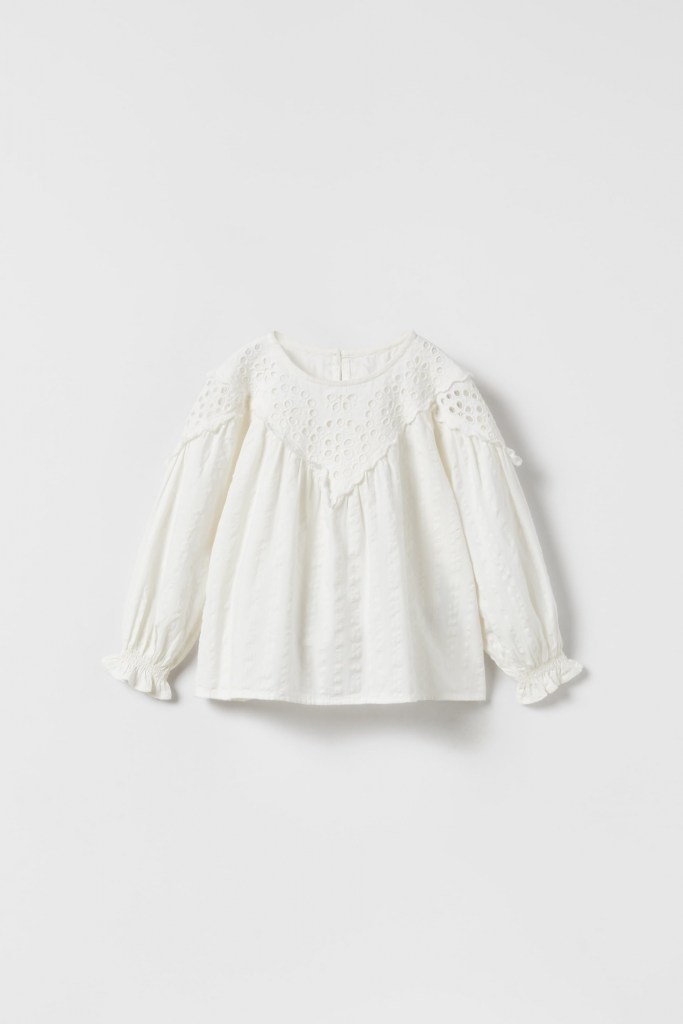 Camisa blanca con bordados, de Zara Baby, 9,99 euros