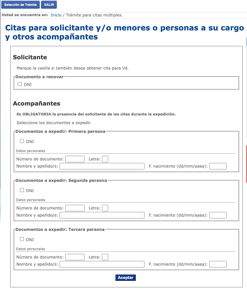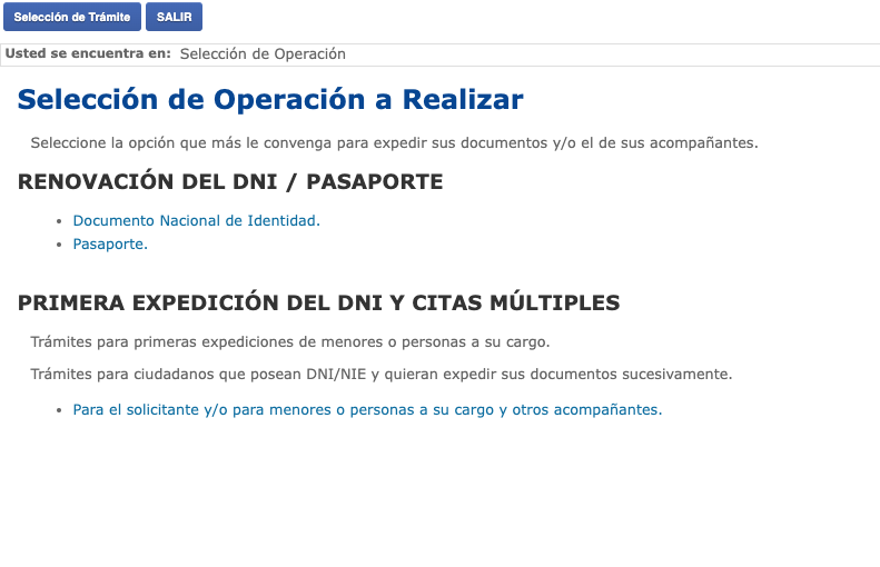 Una vez con todo rellenado, aparecerá una pantalla en la que saldrán dos opciones: renovación del DNI/Pasaporte o Primera expedición del DNI y citas múltiples. En esta segunda opción es en la que habrá que pinchar. Adjuntamos una foto de la pantalla:
