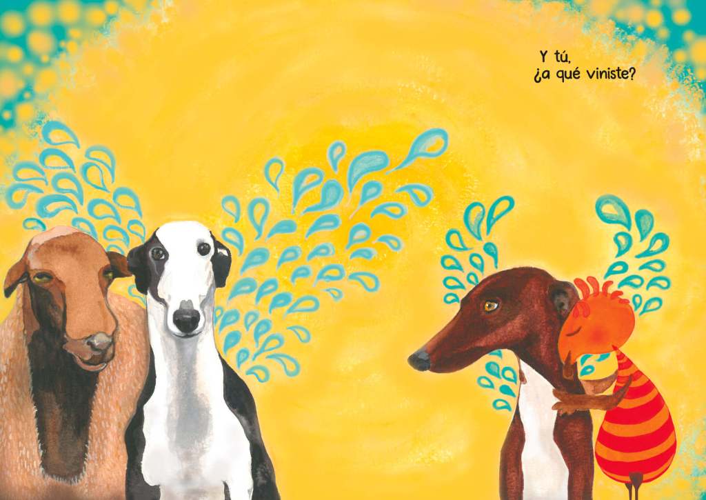 Y para crear los textos la autora ha preguntado a los propios niños sobre estos temas y así sus reflexiones quedan plasmadas a lo largo de las páginas: “Algunos te dicen que han venido a pasear caracoles, otros a buscar Diosas, los hay que vienen a aprovechar las oportunidades que no tuvieron sus padres y también están los que vienen a contar estrellas…”