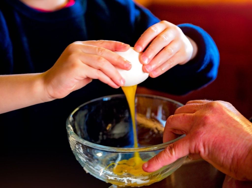 3. Es el momento de darle consistencia a la masa, y quizás sea el punto en el que los niños vayan a necesitar un poco de ayuda, ya que se necesita un poco de fuerza al final. Poco a poco se irá agregando la harina, recordando que se requieren tres medidas del envase de yogur, y mezclando al mismo tiempo. Un truco para conseguir una rápida homogeneidad es remover siempre en el sentido de las agujas del reloj.