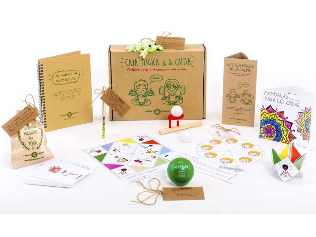 Para niños y niñas en plena etapa de rabietas seguro que les viene muy bien una "caja de la calma". Es algo tan sencillo como reunir diferentes juguetes o artículos que les ayuden a relajarse cuando están nerviosos. Desde las famosas burbujas tipo pop it hasta botellas sensoriales. La cuestión es dotarle de herramientas a las que sepan pueden acudir cuando las necesitan. Hay marcas como Happy Kids Yoga que directamente ofrecen perfecto para regalo un kit completo con este objetivo.