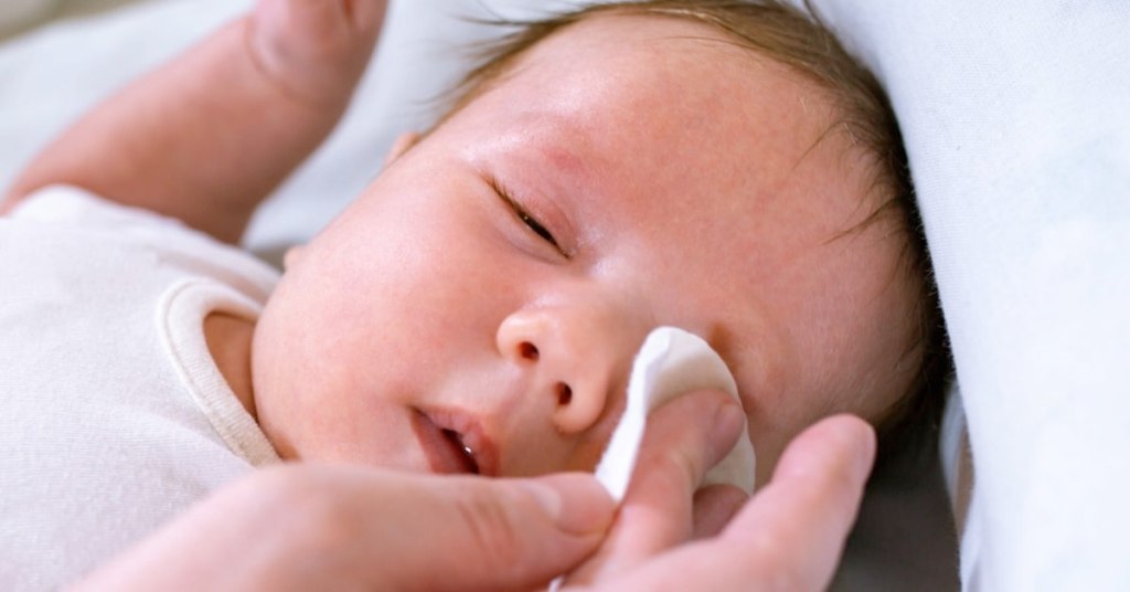 Los ojos del recién nacido son susceptibles a una bacteria que normalmente se encuentra en el canal de parto de la madre y que no causa síntomas en ella. En raras ocasiones, puede provocar en los bebés un tipo grave de conjuntivitis. Por este motivo, poco después del nacimiento, se les aplica un ungüento con antibiótico en los ojos.