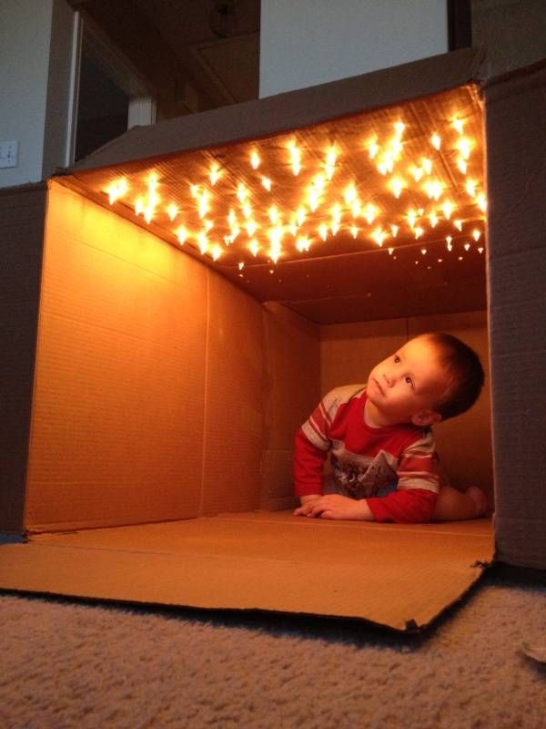 No te preocupes si las manualidades no se te dan bien. Mira esta idea: tan solo tienes que conectar unas lucecitas en el techo de la caja. ¡Les encantará! En: lifeasmama.com.