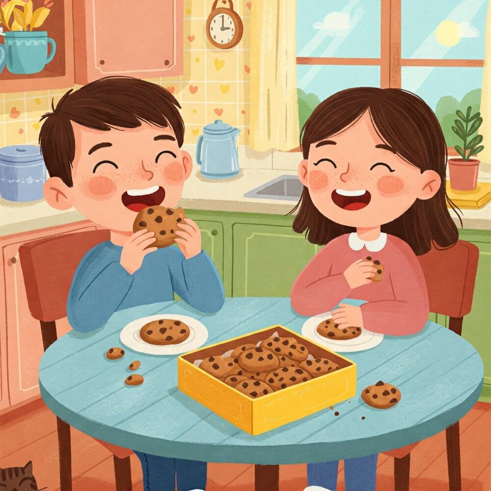 Había una vez, en un dulce paraíso lleno de ríos de sirope y montañas de azúcar, una galleta muy traviesa llamada Mordiscos. Cada mañana, cuando el sol se asomaba, Mordiscos salía de su casita, que era una caja pequeña y amarilla.