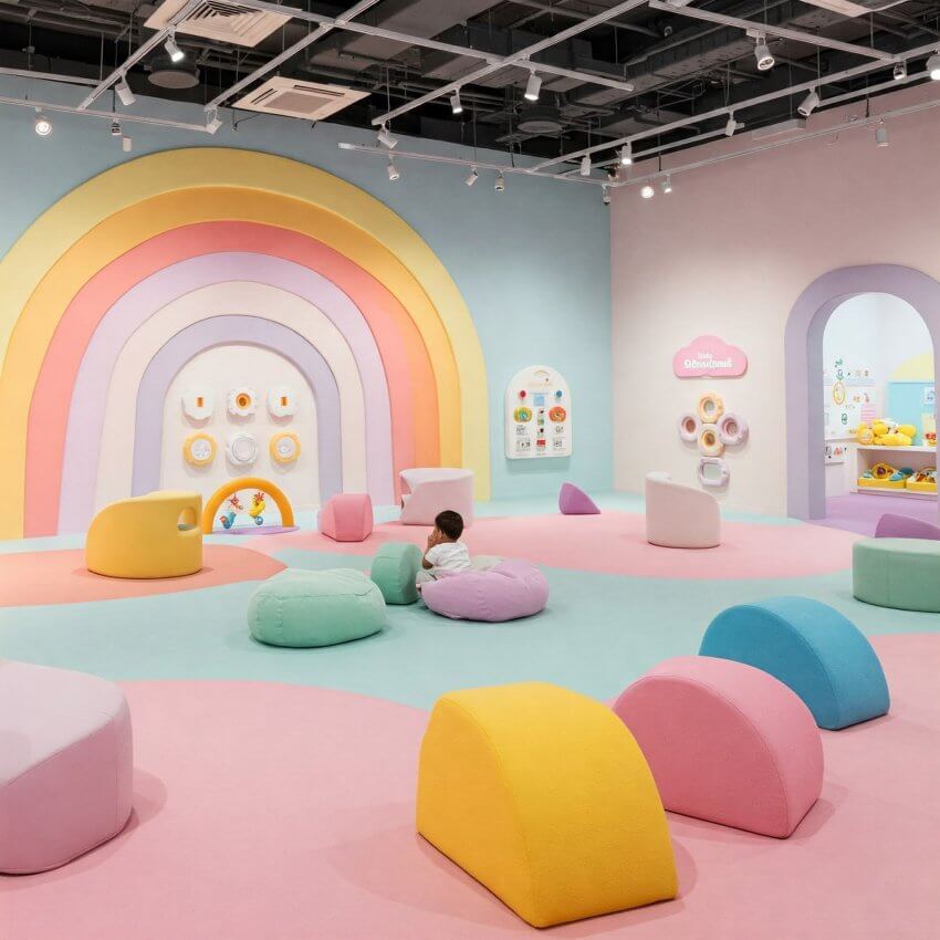 Aquí no hay pantallas ni vitrinas. En su lugar, hay texturas, luces suaves, cuentos, objetos que suenan y un ambiente para explorar el mundo a su ritmo. También hay zonas para amamantar, cambiar, descansar… ¡y respirar!