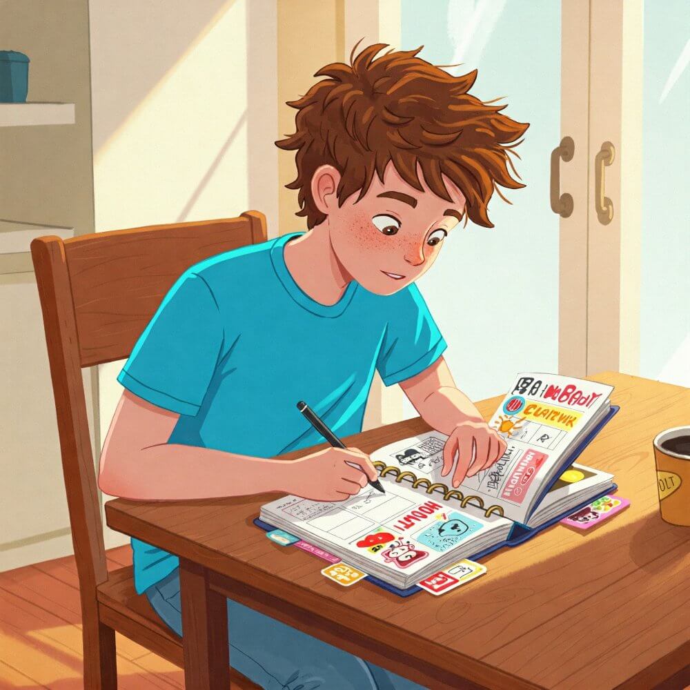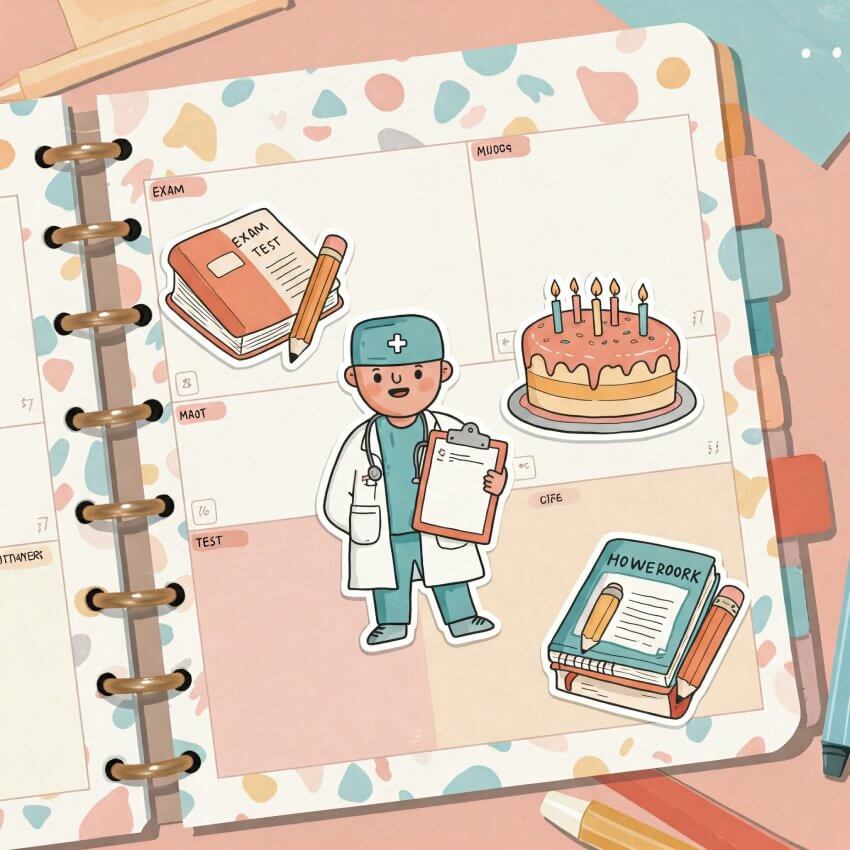 Hay un detalle fundamental que marca la diferencia: el diseño. Una agenda debe ser una aliada, no una fuente de estrés. Cuanto más amigable sea su diseño, más fácil será incorporar este hábito en el día a día. El secreto para que no lo vean como una obligación más está en la personalización. Así que un truco muy efectivo es utilizar sistemas de colores e iconos: Un color para deberes, otro para exámenes, otro para actividades extracurriculares… Decorarla también ayuda a que la agenda se sienta como algo propio, tal vez dibujando una carita feliz para la tarea cumplida, usar pegatinas o frases motivadoras… ¡Todo vale!