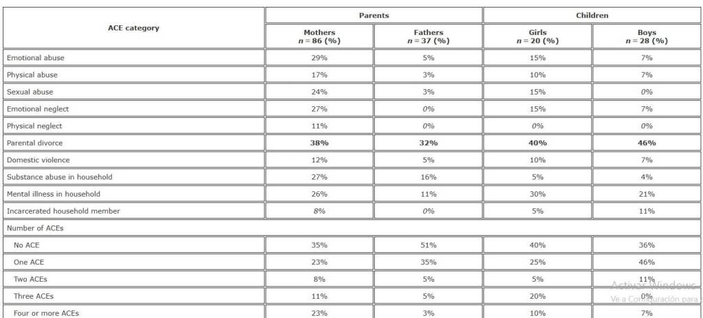 - Las madres que habían vivido más ACEs (especialmente abuso emocional o sexual) tendían a tener hijos con mayores dificultades conductuales, emocionales y sociales.