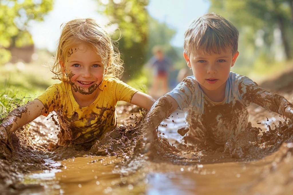 Niños embarrados
