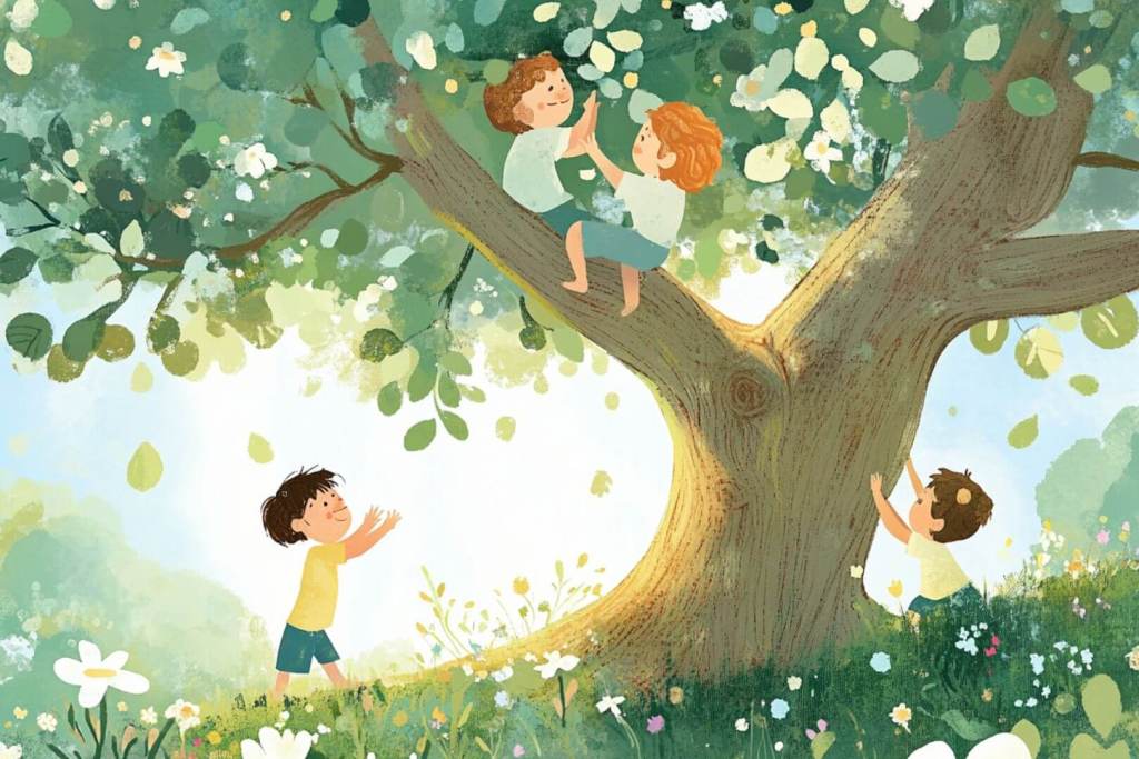 El juego libre y supervisado al aire libre permite a los niños y niñas fallar y volver a intentar, una base esencial para su autoestima y capacidad de afrontar retos futuros (Midjourney - RG)