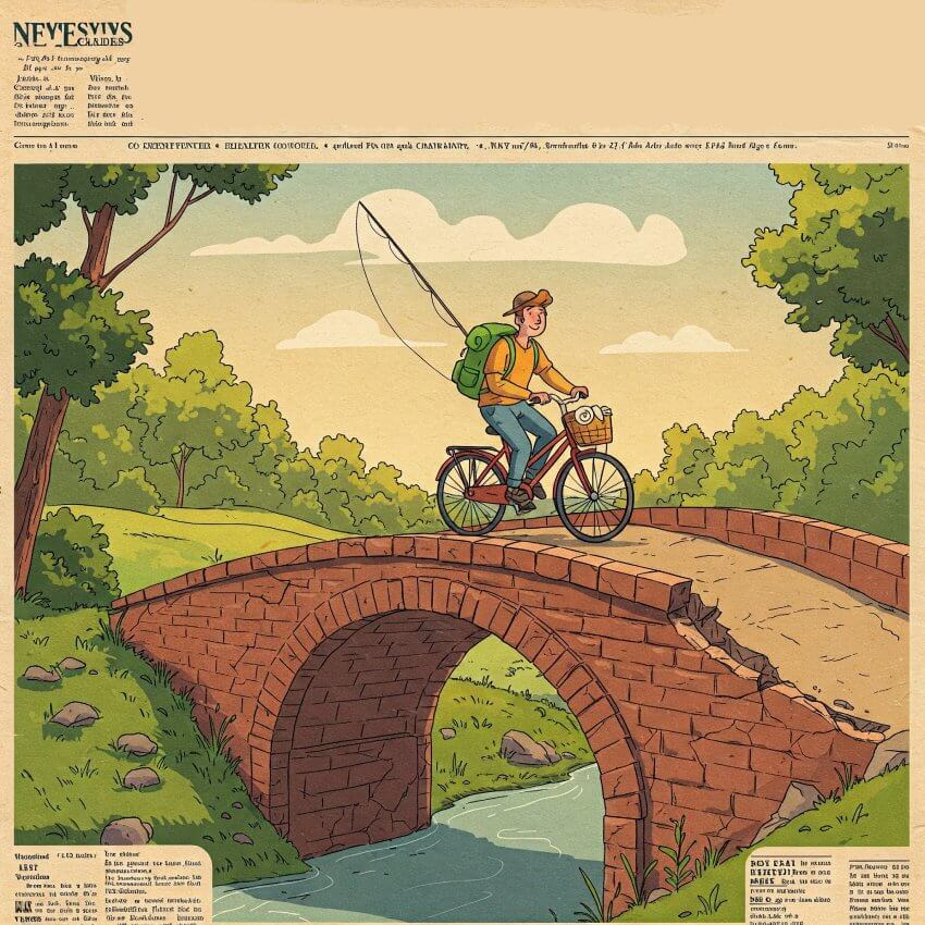 Con una bicicleta, una caña de pescar y una mochila, cruzó el puente mientras se caía a pedazos. Amarró los tablones con los cables de su radio vieja, usó la caña para empujar ramas y ayudó a la familia a salir por la ventana con una cuerda hecha de toallas.