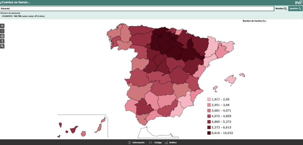 En España es un nombre bastante usado, ya que actualmente hay 102.700 personas inscritas con el nombre Eduardo, según el INE.