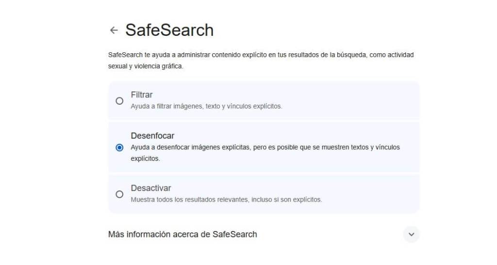 - Escribir en el buscado “safesearch”, búsqueda segura.