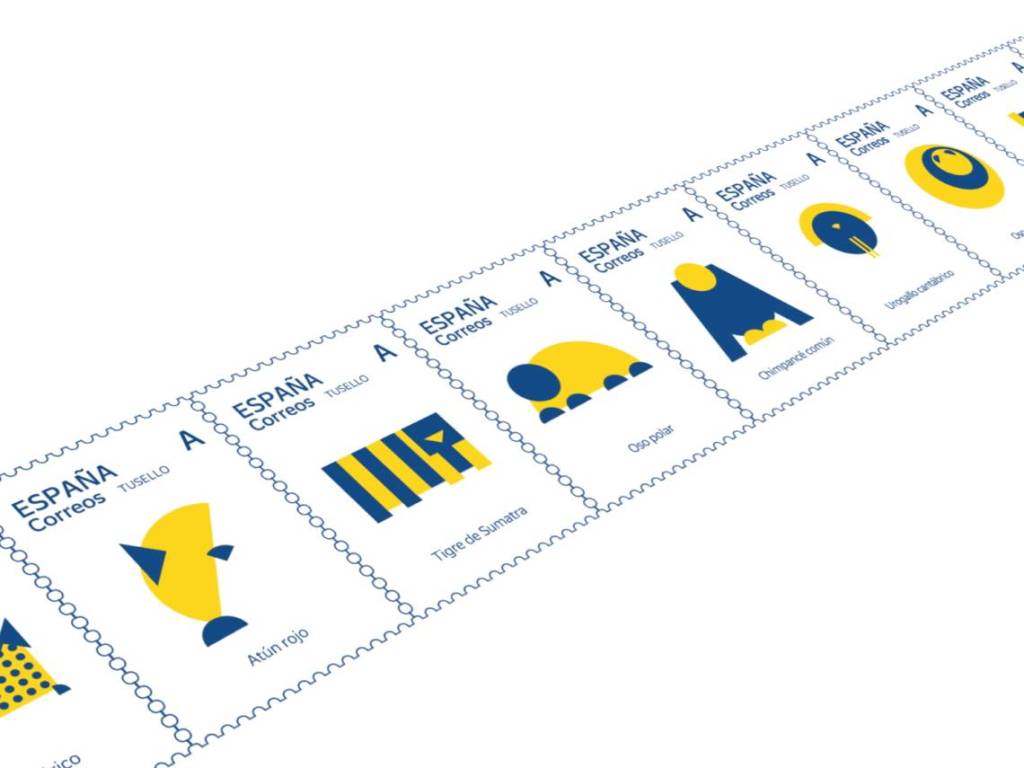 Todas estas especies están presentes en la colección de sellos Difíciles de ver, cuyos diseños combinan formas geométricas amarillas y azules. “A simple vista puede parecer solo una combinación de figuras geométricas amarillas y azules; pero en realidad son animales en peligro de extinción, especies difíciles de ver que más va a costar observar si desaparecen”, señalan desde Correos.