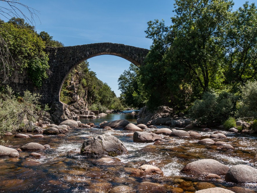 Es muy probable que en las guías turísticas de Extremadura hayas visto la imagen idílica de gente bañándose a los pies de lo que parece un puente muy antiguo. Existe este paraje; es la garganta de Alardos, situada en Madrigal de la Vera, camino de Ávila. Ideal para darse unbaño, también los pequeños, en los charcos que dan lugar a unas piscinas naturales espectaculares con el puente de Alardos, del siglo XVIII, como testigo de excepción.