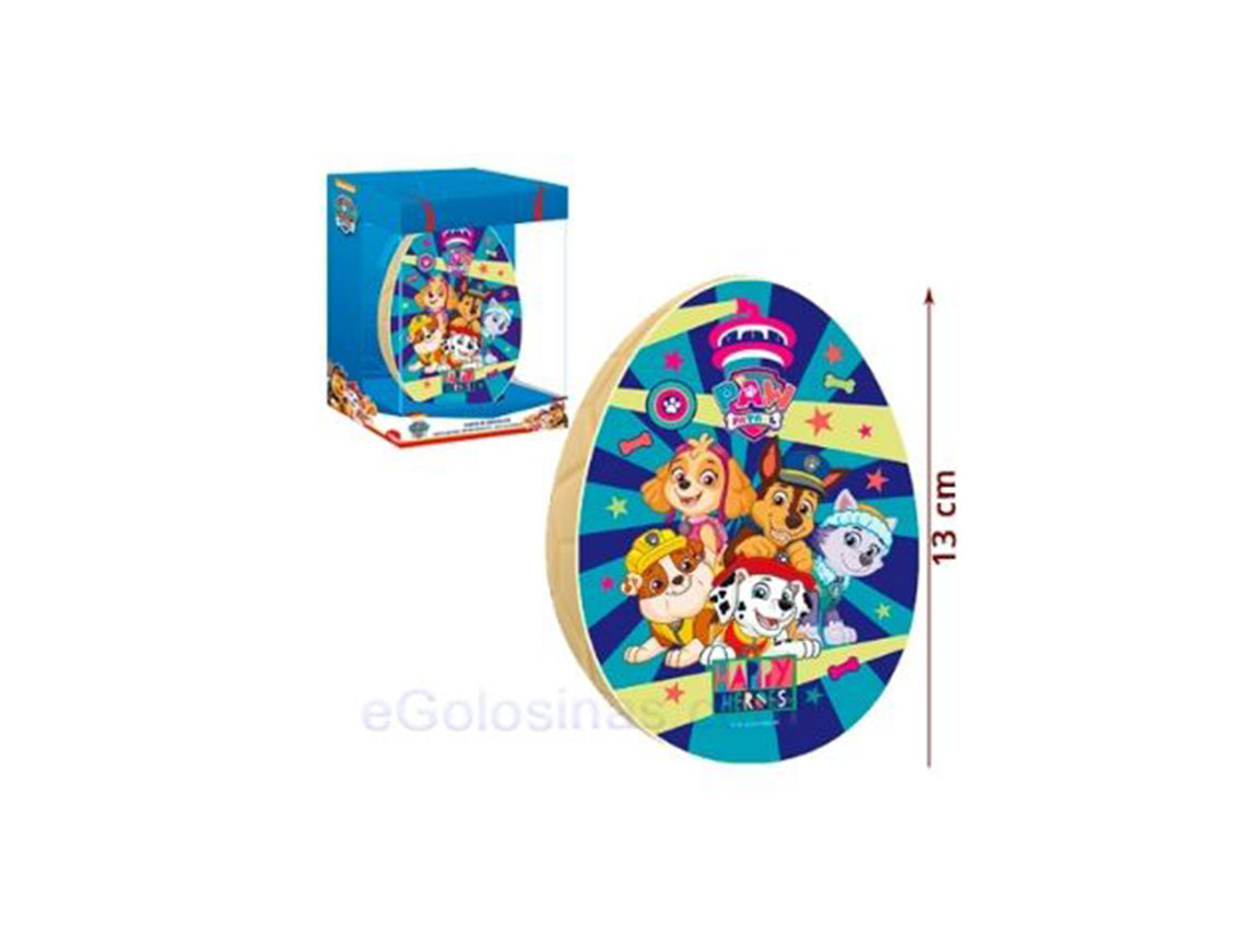 Egolosinas, por ejemplo, dispone de este chulísimo medio huevo de chocolate con motivos de la Patrulla Canina a todo color, ideal para a los peques regalar como Mona de Pascua.