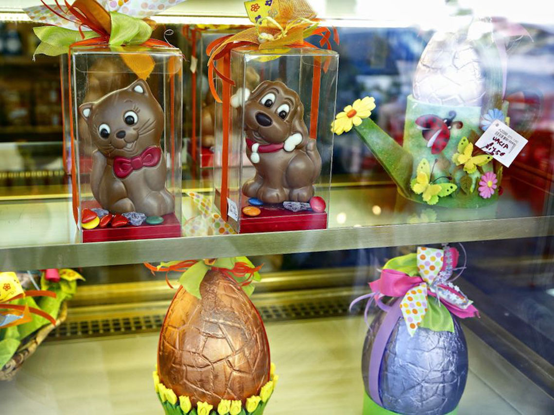 En esta clásica pastelería abierta desde 1886 elaboran figuras de chocolate que son auténticas obras de arte y, aunque las monas son las protagonistas, también hay deliciosos huevos de Pascua.