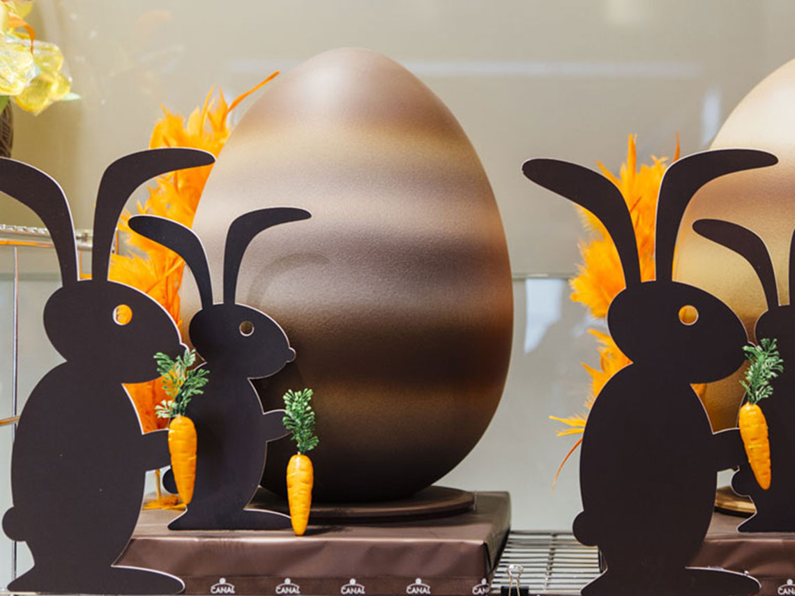 Los escaparates de esta especial pastelería no tardarán en estar plagados de huevos de todos los tamaños, desde los pequeños forrados en papel metálico de colores hasta los más gigantes que habéis visto nunca.