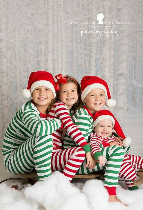 Si tus hijos ya no son bebés (o quieres que salgan todos en la foto) crea un pequeño reino de ayudantes de Papá Noel. Prepara un traje de elfo creado con unas medias de rayas rojas y blancas, una camiseta roja y unos zapatos de fieltro acabados en punta con un cascabel, consigue grandes palos de piruleta gigantes y siéntalos en un banquito rojo. ¡El resultado será genial!