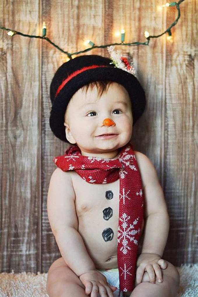 Un gorrito, una bufanda y un poquito de pintura naranja para la nariz será todo lo que necesites.