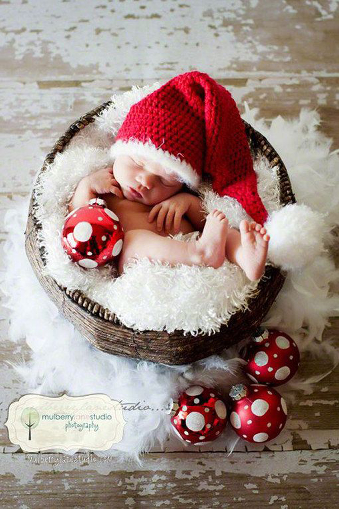 Da igual que tu bebé sea tan pequeño que entre entero en el gorro de Papá Noel que tienes en casa. Juega a ponérselo en la cabecita o, por qué no, ¡haz que sea su vestido para la foto!