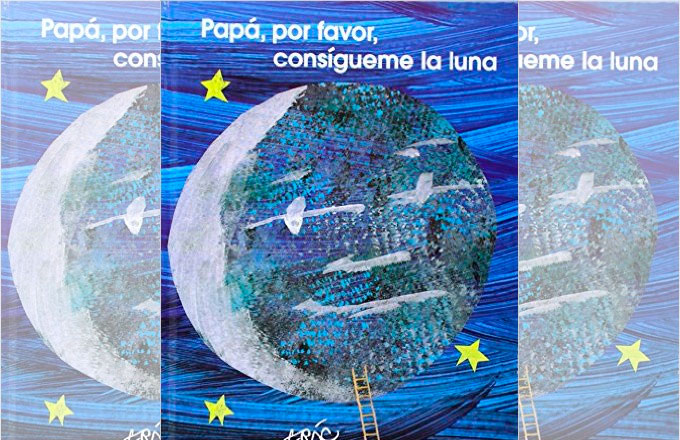 'Papá, por favor, regálame la luna', escrito por Eric Carle trata de la preciosa historia de Mónica que quería jugar con la luna, así que le pidió a su  papá que se la bajase. El papá trajo una escalera larguísima y trepó hasta llegar a ella. La luna era demasiado grande, pero le prometió que cada noche se haría más pequeña y entonces se la podría llevar… Un libro con páginas desplegables que muestra claramente dónde debe estar la luna.