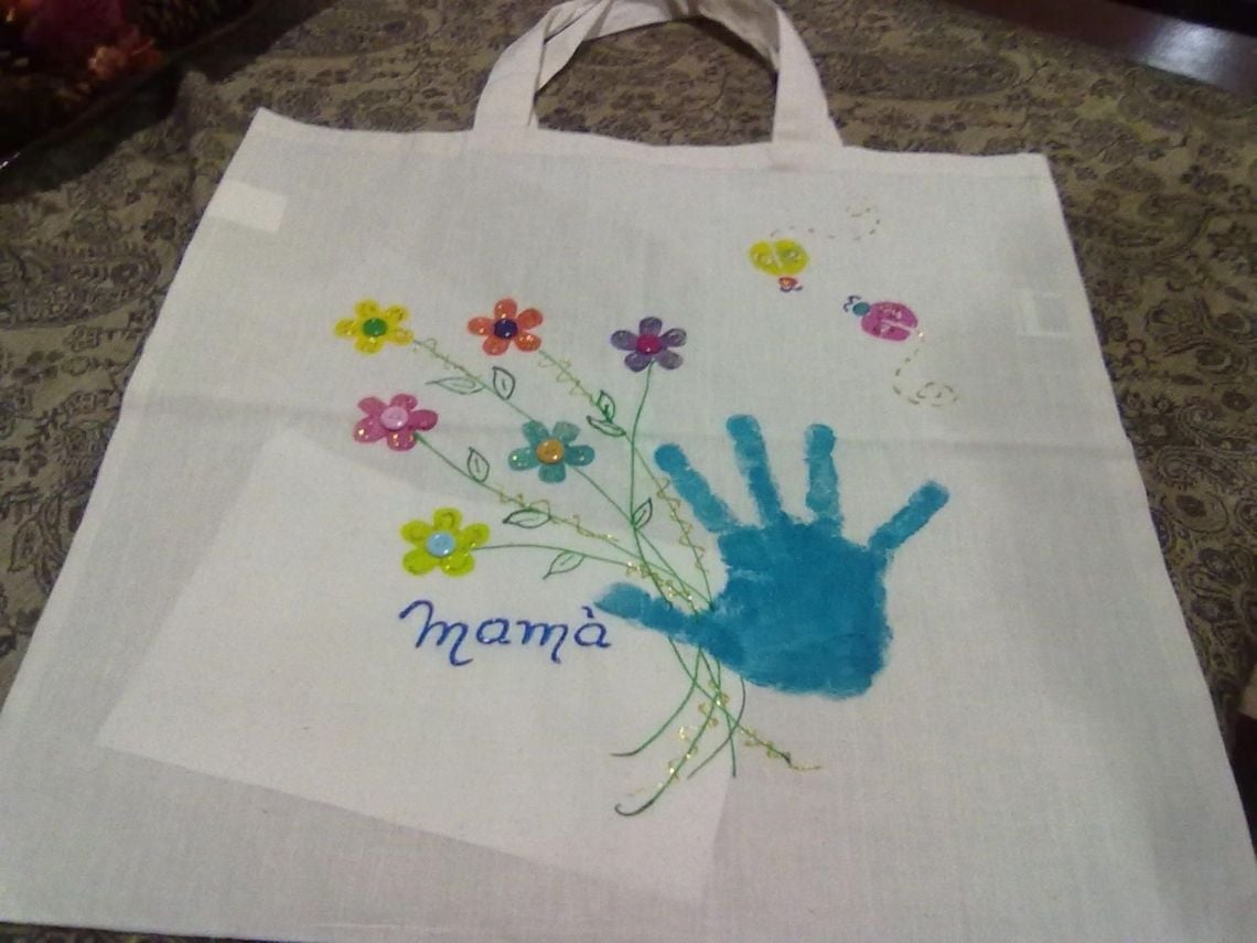 Podéis haceros con un bolso de tela básico, en el color favorito de mamá, escoger pinturas especiales para tela y personalizarlo a vuestro gusto.¡Un regalo genial!