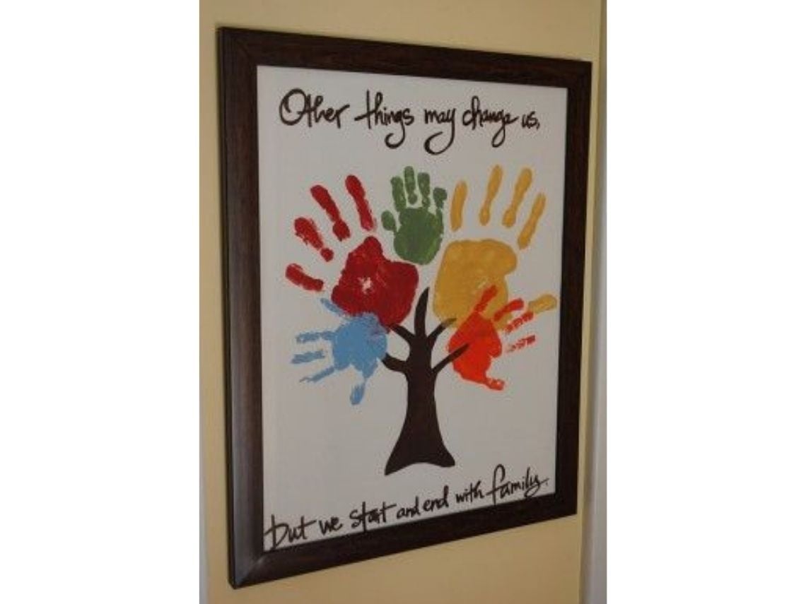 ¿Qué tal hacer un marco de fotos con sus propias manitas? Necesitaréis una foto con mamá, unas cuantas témperas para dedos de diferentes colores y un folio.Ahora solo quedará pintar las palmas de diferentes colores e ir dejando su huella formando un marco sobre el lienzo blanco.Por último, pegar la foto dentro y listo.