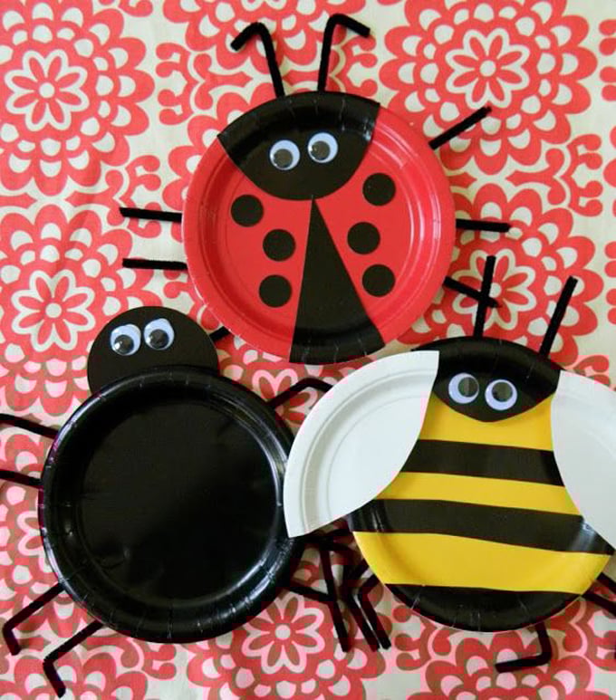 Podemos crear un montón de formas de insectos sirviéndonos de unos cuantos platos de cartón. Algunas ideas son las mariquitas o las abejas.