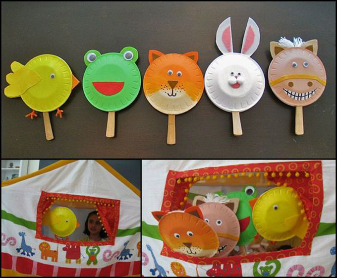 Y, así, con unos cuantos platos y unas pinturas y un tenderete podremos tener un teatro perfecto para pasar una tarde en casa (o en el campo y entretener a los niños con los abuelos).