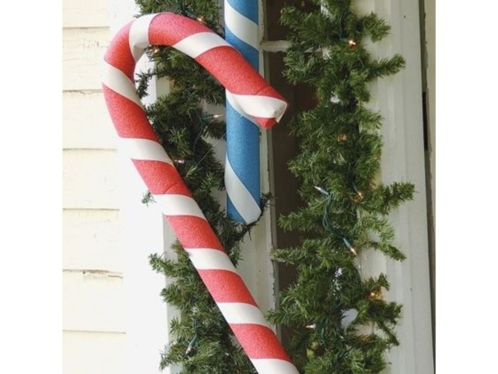 Otra que llevamos viendo algunos años es la de aprovecharlo para crear un garrote de Navidad gigante. ¿Cómo? Forrando el churro de tela o pintándolo con pintura blanca y añadiendo algunas franjas rojas. Aquí el resultado: