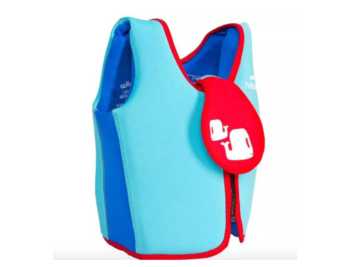 En una combinación de colores azules y rojos, chaleco de Nabaiji disponible en dos tallas: de 15 a 18 kilos y de 18 a 30 kilos.  Precio: 4,99 €