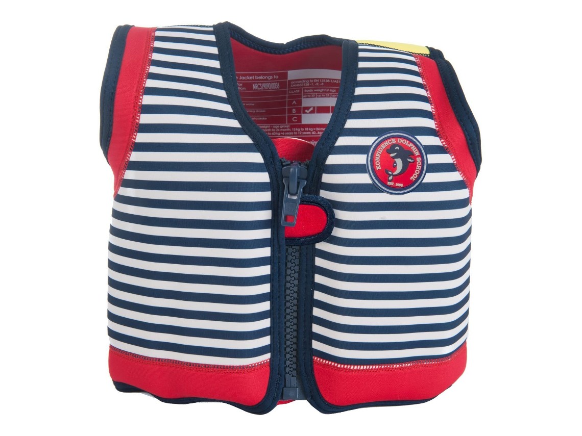 Chaleco flotador para niños de 11 a 18 kg con estampado a rayas. Precio: 40,50 euros